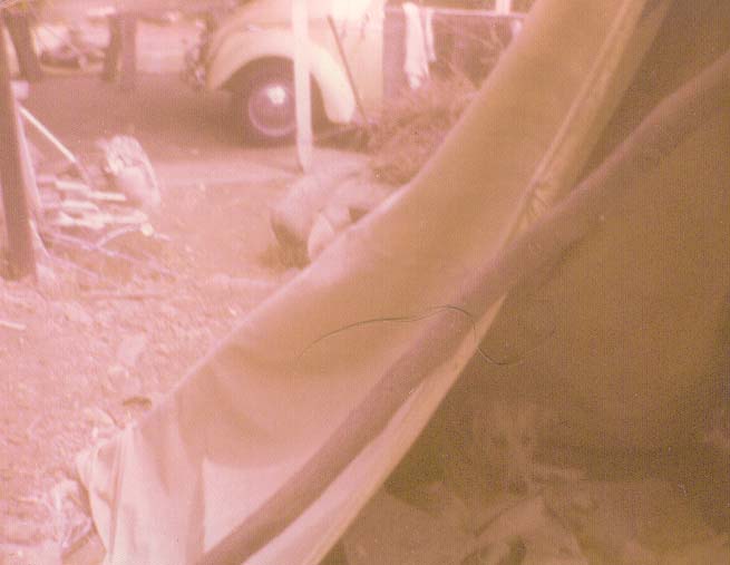 Look carefully. You can see the left front fender of the '61 bug parked under the parking stucture. That's no ordinary vw. That's the legendary Bozomobile. You are standing on the north side of the FIRE pit looking south at the Tee Pee. Are you still looking carefully?